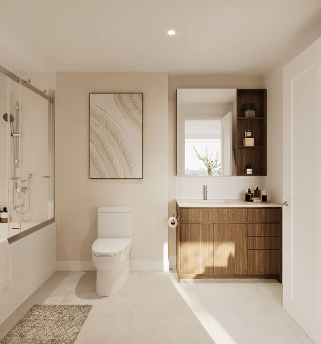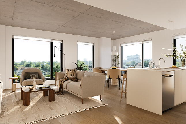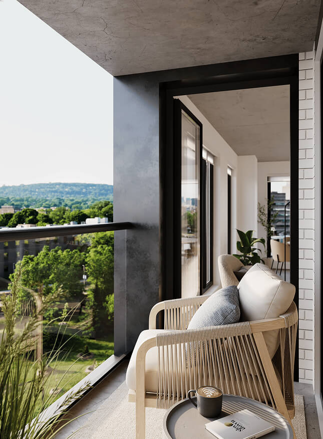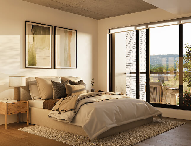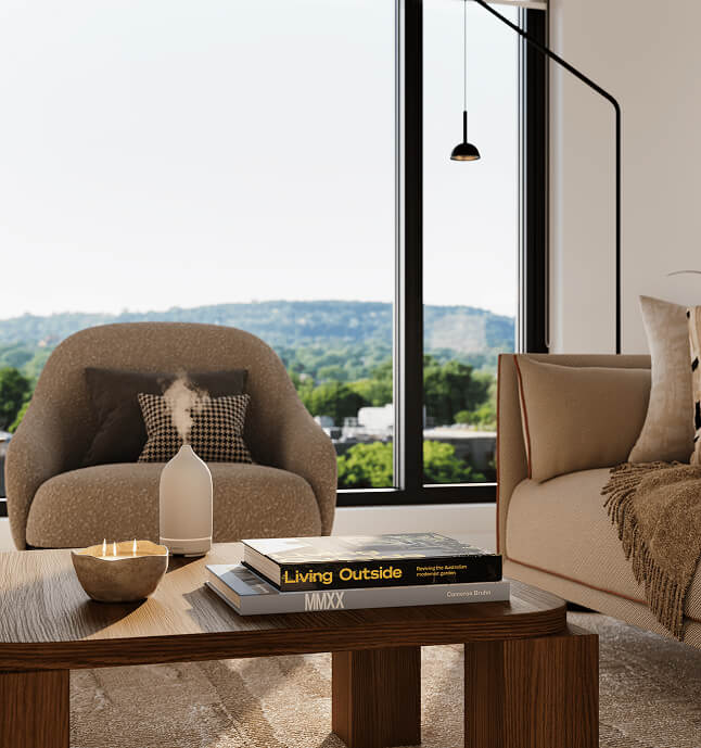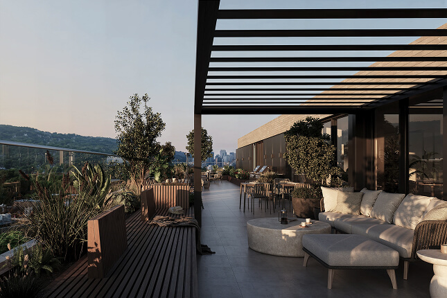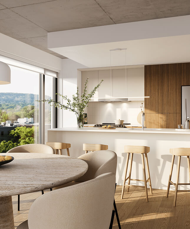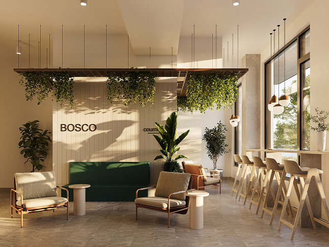 Through these images, let yourself be carried by the softness of textures, the brightness of the loggias, and the soothing presence of greenery that defines Bosco.